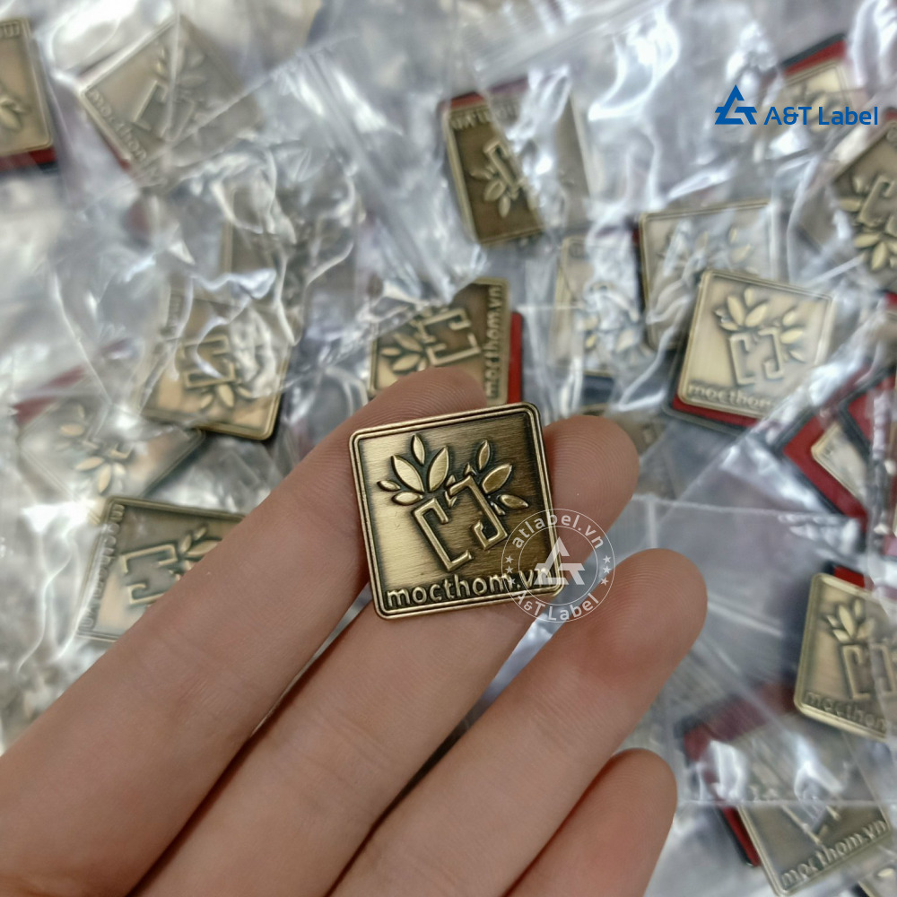 - Tem đồng dập ăn mòn có thể gắn lên mọi sản phẩm, chất liệu khác nhau nhờ keo dán 3M chuyên dụng.